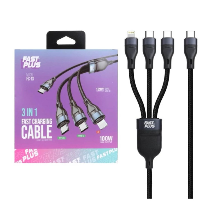کابل شارژ 1.2 متری فست سه کاره مدل FC-13 - مشکی - DST (گارانتی شش ماهه)(کیفیت عالی)