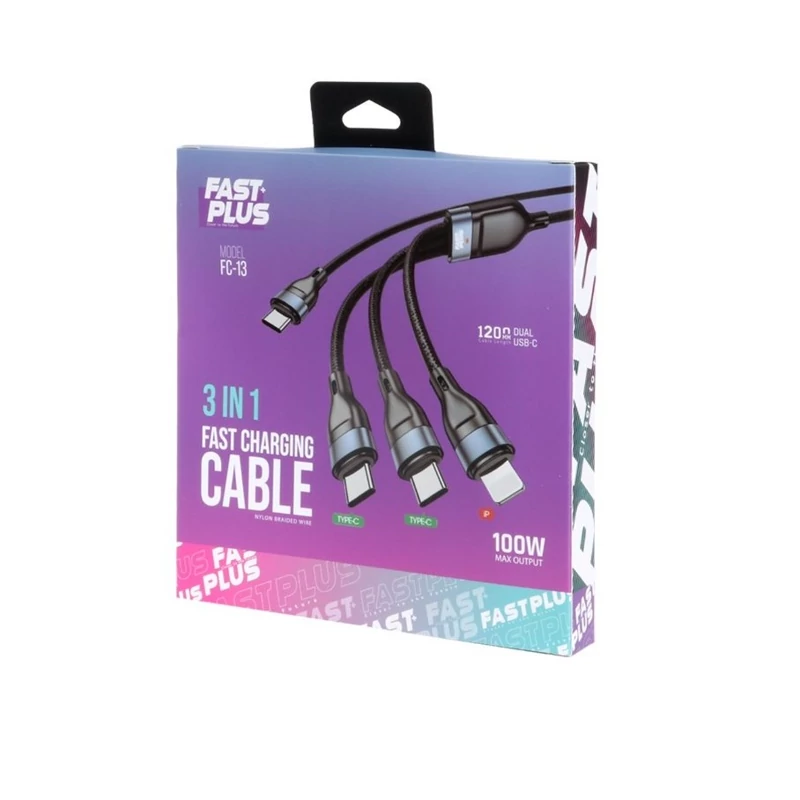 کابل شارژ 1.2 متری فست سه کاره مدل FC-13 - مشکی - DST (گارانتی شش ماهه)(کیفیت عالی)
