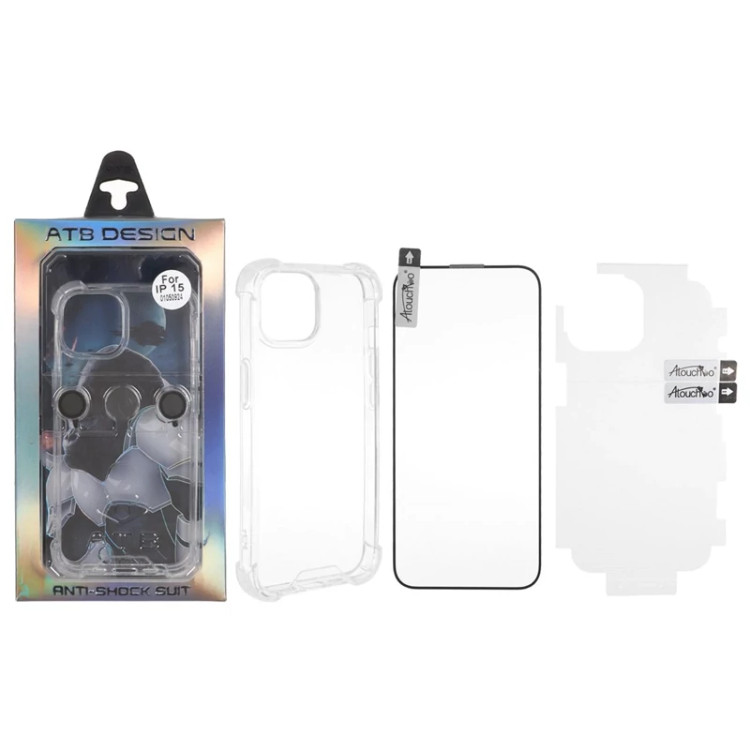 قاب ATB ایربگ دار با ست برچسب پشت و محافظ لنز و صفحه نمایش و کاردک Apple iPhone 15 / iPhone 14 / iPhone 13