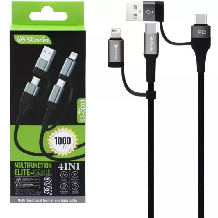 کابل شارژ PD و فست Storia 4 in 1 مدل ST-DC03 (کیفیت بالا)- مشکی
