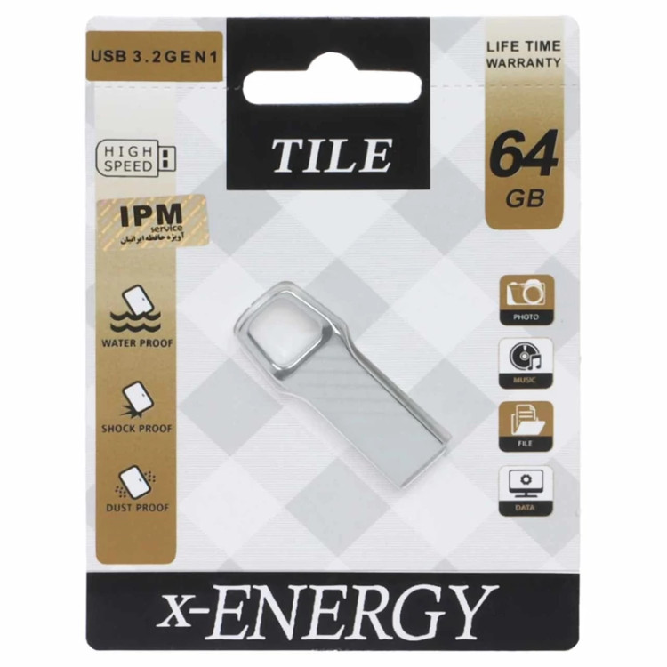 X-ENERGY Tile USB3.2 Flash Memory - 64GB نقره ای (گارانتی مادام العمر IPM)