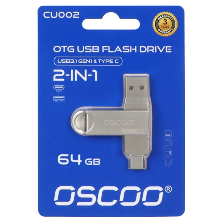 OSCOO CU002 USB3.1 USB OTG Flash Memory - 64GB نقره ای