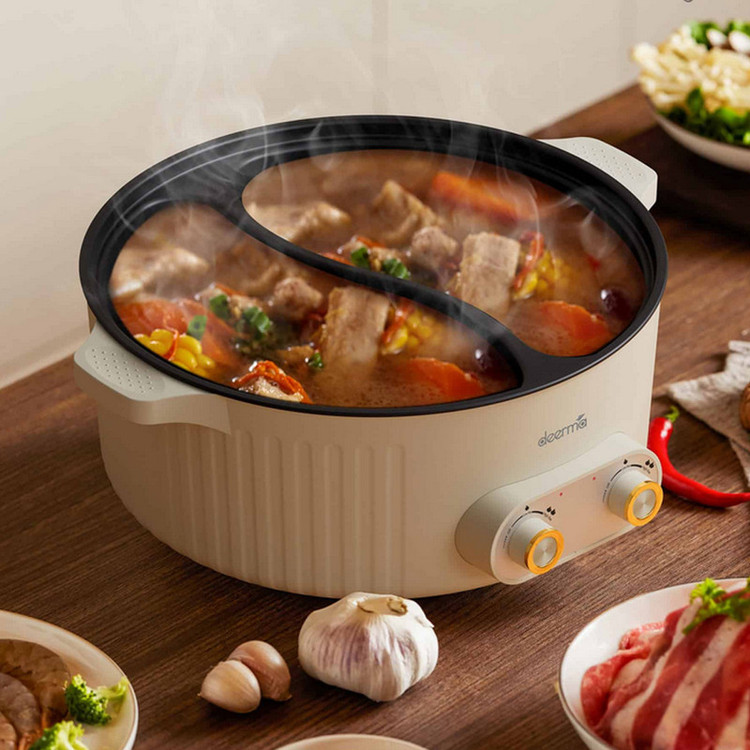 منبع انرژی برق شهری 220 تا 240 ولت با فرکانس نامی 50 تا 60 هرتز / جنس داخلی قابلمه تفلون نچسب / عملکرد چند منظوره / کنترل آسان دما / مجهز به دو دستگیره تنظیم دما / ظرفیت پخت جداگانه برای هر محفظه / گرمایش سریع و توزیع یکنواخت گرما