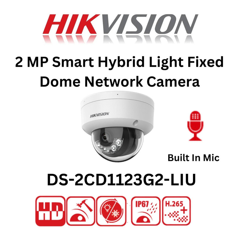 دوربین هایک ویژن مدل DS-2CD1123G2-LIU از دوربین های دام تحت شبکه این برند برتر جهانی است. دوربین هایک ویژن DS-2CD1123G2-LIU دارای لنز ثابت است که با فواصل کانونی 2.8 و 4 میلیمتر در بازار عرضه میشود. تفاوت این لنزها در زاویه دید دوربین مداربسته است که چقدر فضا را پوشش دهد. شما با استفاده از دوربین هایک ویژن مدل DS-2CD1123G2-LIU تصاویر در شب هنگام را تا برد 30 متر دریافت خواهید کرد. دوربین 2MP هایک ویژن در این مدل دارای نور سفید برای ثبت تصاویر رنگی در شب بوده و همچنین دارای میکروفن داخلی است.