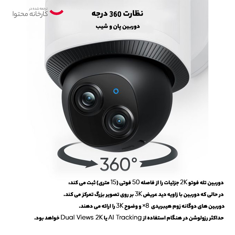 برای مشاهده کامل، 360 درجه به صورت افقی حرکت دهید. هوش مصنوعی افراد را شناسایی می کند و حرکات آنها را ردیابی می کند. گشت زنی خودکار طبق برنامه