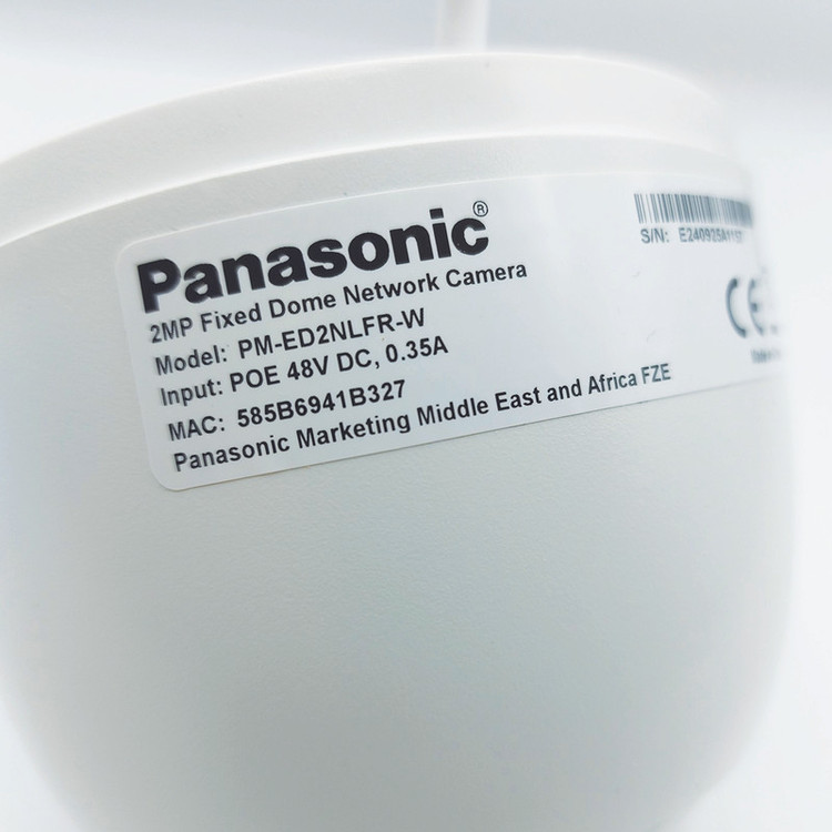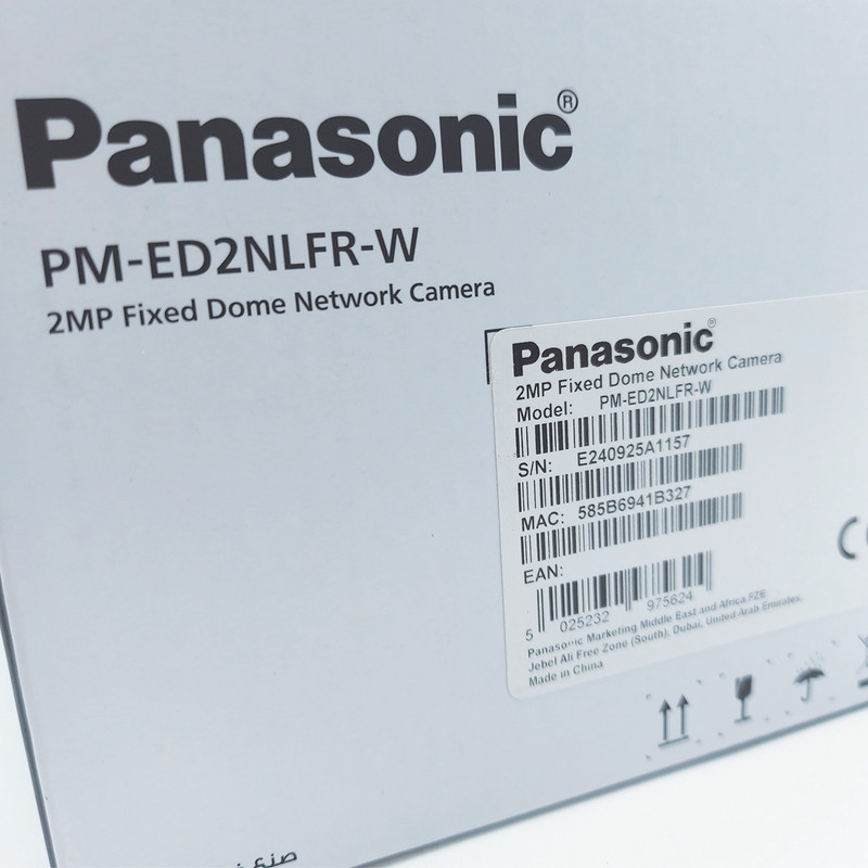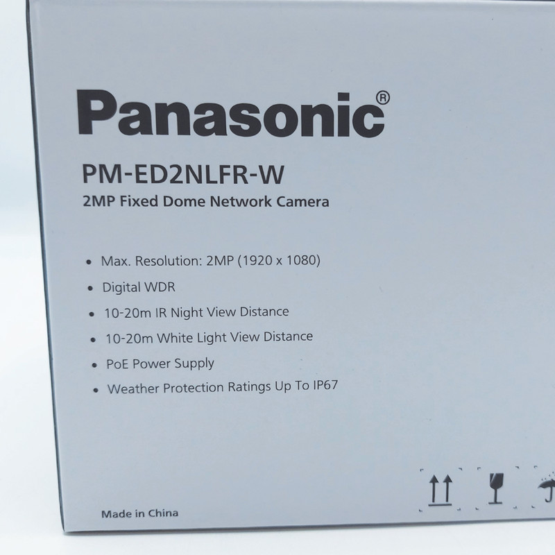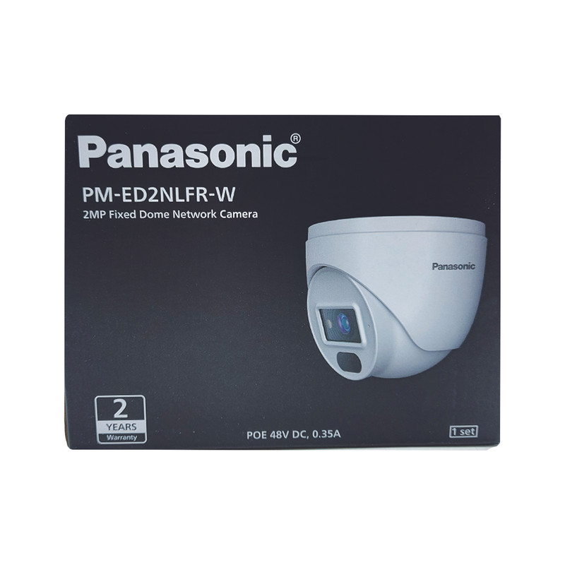 دوربین دام تحت شبکه پاناسونیک مدل PM-ED2NLFR-Wاز سری محصولات اقتصادی پاناسونیک محسوب می شود که دارای کیفیت تصویری برابر با 2 مگاپیکسل می باشد و لنز این دوربین ازنوع ثابت 2.8mm می باشد همچنین دارای قابلیت دید در شب با برد 20 متر می باشد و میکروون داخلی، قابلیت POE(انتقال برق بر بستر شبکه) و WDR(جمع کردن نور زیاد به صورت سخت افزاری) نیز از جمله قابلیت های این دوربین می توان نام برد فرمت ذخیره سازی این دوربین +h265 می باشد و همچنین دارای پروتکل مشترک ONVIF می باشد
