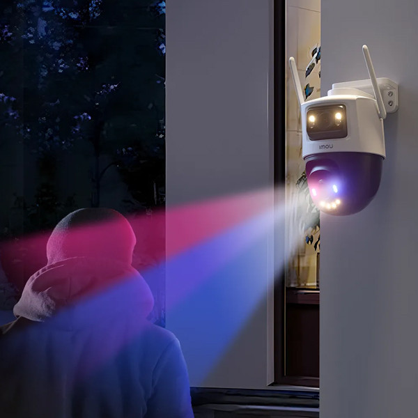 وجود چراغ های هشدار دهنده آبی و قرمز در این دوربین، یکی از ویژگی های بازدارنده ای است که امنیت محیط را چند پله افزایش میدهد. این چراغ ها که چراغ پلیسی نیز نامیده میشوند برای جلوگیری از پیشروی بیشتر سارقان بسیار کارآمد هستند.