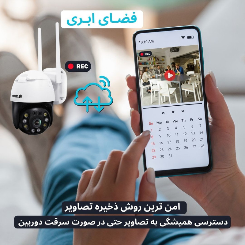 دوربین بی سیم چرخشی اسفیورد مدل Z430 مخصوص گوشی های اندرویدی یک سیستم امنیتی کامل برای شروع یک زندگی امن و هوشمند می باشد که شامل دوربین مداربسته با کیفیت تصویر 4MPX به همراه دزدگیر هوشمند داخلی با تشخیص پیکره انسانی و به صدا دراورد آژیر و ارسال پیامک هشدار (SMS) به مالک دوربین می باشد که توانایی ضبط صدا و تصویر محیط بر روی کارت حافظه و همچنین فضای ابری اسفیورد (CLOUD) را دارد. دوربین بیسیم اسفیورد به راحتی توسط خودتان نصب و راه اندازی می شود و کافی است که به صورت وایفای به اینترنت متصل شود تا بتوانید صدا و تصویر دوربین را بصورت آنلاین روی گوشی موبایل خود از هر کجای ایران ببینید. اگر می خواهید این دوربین را در محیط باغ یا ویلا استفاده نمایید که دسترسی به اینترنت پر سرعت ندارید، می توانید از مودم های سیمکارتی دانگلی اسفیورد استفاده کنید. از ویژگی های ارزشمند دوربین Z430 اسفیورد قابلیت دید در شب رنگی دوربین می باشد که تصاویر واضحی از محیط را در تاریکی مطلق برای شما ضبط می نماید و با توجه به ضد آب بودن دوربین اسفیورد، می توان بدون دغدغه آن را در محیط های خارج از ساختمان استفاده نمود. دوربین بیسیم اسفیورد برای ذخیره تصویر نیاز به دستگاه های ذخیره ساز ندارد و با قرار دادن یک کارت حافظه میکرو اس دی در محفظه دوربین، می تواند تصاویر محیط را برای شما ذخیره کند که در حالت ضبط 24 ساعته به ازای هر روز نیاز به 10 گیگابایت حافظه دارد و در صورت پر شدن حافظه دوربین، تصاویر قدیمی به صورت خودکار حذف شده و تصاویر جدید جایگزین می شود. قابلیت چرخش این دوربین می تواند شما را از نصب چند دوربین مداربسته بی نیاز کند و در کنار قابلیت تعقیب هدف می تواند مانند یک نگهبان عمل کند تا کوچک ترین تحرکات را در محیط دنبال کند. برای بازپخش و مرور تصاویر ضبط شده دوربین، فقط کافی است که نرم افزار فارسی دوربین اسفیورد را روی موبایل باز کنید و تاریخ و ساعت مورد نظر را مشخص کنید و تصاویر ضبط شده را ببینید و یا یک کپی از آن تصاویر تهیه کنید. این دوربین بر روی گوشی های آیفون قابل استفاده نیست.
