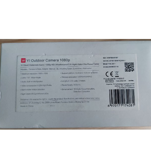 دوربین فضای باز Yi امکان فیلمبرداری با رزولوشن تصویر 1080p HD در این دوربین پیاده سازی شده و نرخ 20 فریم بر ثانیه که تصاویری روان و واضح ضبط میکند. دید وسیع و زاویه باز 110 درجه میباشد
