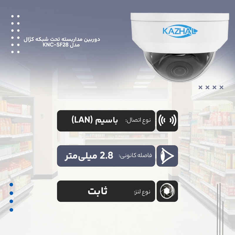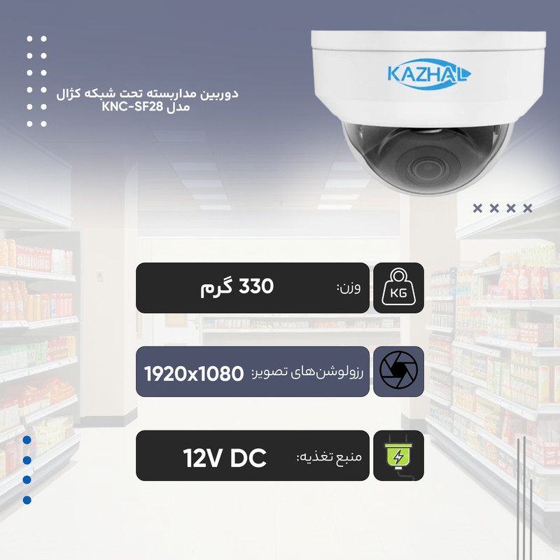 دوربین مداربسته تحت شبکه کژال مدل KNC-322LB-SF28-A : دوربین دام فول HD با قابلیت دید در شب 30 متری با بدنه ی فلز و پلاستیک با استاندارد IK10 (مقاوم در برابر ضربه) بوده و دارای استاندارد IP67 (مقاوم در برابر نفوذ آب و گرد و غبار) است .