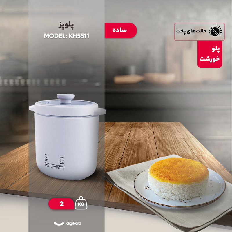 پلوپز دو نفره مدل KH5511 دستگاهی کوچک، کممصرف و کاربردی است که برای خانوادههای کمجمعیت، زوجهای جوان یا افرادی که بهتنهایی زندگی میکنند طراحی شده است. توان مصرفی این دستگاه تنها ۲۰۰ وات است و همین موضوع آن را در دسته پلوپزهای اقتصادی و بهینه قرار میدهد. با وجود توان پایین، سیستم گرمایش المنت پایین توانسته نیاز به پخت یکنواخت برنج و حتی تهیه خورشتهای ساده را پوشش دهد.