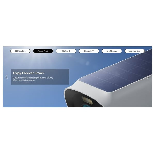 با پنل خورشیدی خود، eufycam 3 برای کار مداوم فقط به دو ساعت نور خورشید نیاز دارد که از عمر باتری دوربین های امنیتی استاندارد پیشی می گیرد.
