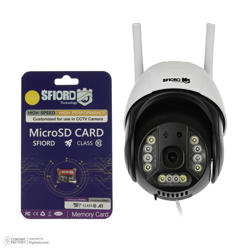 دوربین بیسیم چرخشی اسفیورد مدل Z325 یک سیستم امنیتی کامل برای شروع یک زندگی امن و هوشمند، که شامل دوربین مداربسته با کیفیت تصویر 2 مگاپیکسل به همراه دزدگیر هوشمند با پخش آژیر و ارسال پیامک (SMS) هشدار در زمان مشاهده حرکت به مالک دوربین است. این مدل توانایی ضبط صدا و تصویر محیط بر روی کارت حافظه و یا فضای ابری اسفیورد را دارد و با فعالسازی دزدگیر هوشمند، دوربین اسفیورد میتواند حرکت اجسام یا حضور انسان را در تصویر تشخیص داده و متناسب با تنظیمات انجام شده، آژیر داخلی دوربین را فعال کند و یک پیامک برای گوشی موبایل مالک ارسال کند. دوربین بیسیم اسفیورد به راحتی توسط خودتان قابلیت نصب دارد و کافیست که به صورت وایفای به اینترنت متصل شود تا بتوانید صدا و تصویر دوربین را بصورت آنلاین روی گوشی موبایل خود از هر کجای ایران ببینید. از ویژگیهای ارزشمند دوربین Z325 اسفیورد قابلیت دید در شب رنگی دوربین است که تصاویر واضحی از محیط را در تاریکی مطلق برای شما ضبط میکند و با توجه به ضد آب بودن این دوربین، میتوان بدون دغدغه آن را در محیطهای خارج از ساختمان استفاده کرد، این دوربین برای ذخیره تصاویر نیاز به دستگاههای ذخیره ساز ندارد و با قرار دادن کارت حافظه میکرو اس دی 64 گیگابایتی که در جعبه محصول قرار دارد در شیار کارت حافظه دوربین، تصاویر محیط را برای شما ذخیره و در صورت پر شدن حافظه دوربین، تصاویر قدیمی به صورت خودکار حذف می کند تا تصاویر جدید جایگزین شود. قابلیت چرخش این دوربین میتواند شما را از نصب چند دوربین مداربسته بینیاز کند و در کنار قابلیت تعقیب هدف میتواند مانند یک نگهبان عمل کند تا کوچکترین تحرکات را در محیط دنبال کند. اگر نگران خاموش شدن دوربین در زمان قطعی برق هستید، می توانید از برق اضطراری (UPS) های 12 ولت اسفیورد برای این مدل استفاده کنید تا اطمینان پیدا کنید که دوربین بدون برق تا 3 ساعت روشن خواهد ماند. برای بازپخش و مرور تصاویر ضبط شده دوربین، فقط کافی است که نرم افزار اختصاصی فارسی اسفیورد را روی موبایل باز کنید و تصاویر ضبط شده را ببینید و یا یک کپی از آن تصاویر تهیه کنید. این دوربین گارانتی معتبر کیانام ارتباط را دارد.