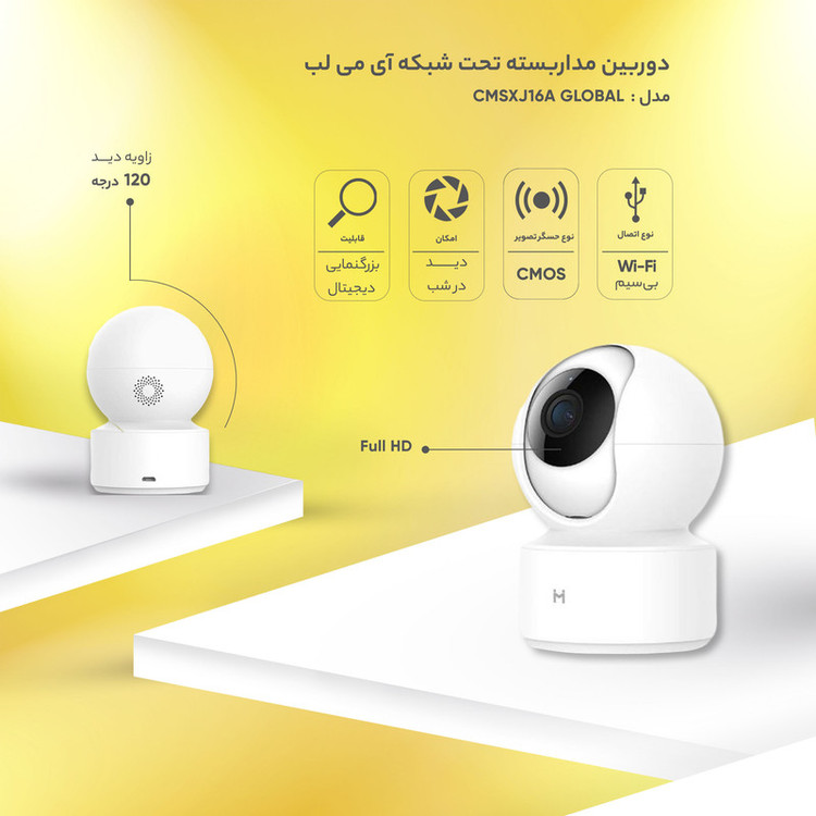 شرکت آی می لب زیر مجموعه شرکت شیائومی است و همچنین دوربین مداربسته تحت شبکه آی می لب مدل «CMSXJ16A» به صورتی طراحی شده است که شما میتوانید به راحتی و با استفاده از نرم افزار گوشی خود آن را به صورت 355 درجه در محور افقی و 120 درجه در محور عمودی بچرخانید .امکان اتصال بی سیم به صورت وایرلس به مودم را دارد و تصاویر ضبط شده و زنده خود را با صدا و بدون نیاز به هیچ گونه لوازم جانبی به تمامی نقاط دنیا ارسال کند همچنین قادر است تصاویر و صدا را بروی MICRO SD ضبط کند و قابلیت پشتیبانی رم تا 64 گیگ را دارد .یکی از قابلیتها، توانایی دیدن تصویر و صدای ضبط شده به صورت همزمان در نرم افزار است. کاربردهای اصلی این محصول استفاده بعنوان دوربین پرستار کودک (دوربین نظارت کودک) ، دوربین مدار بسته جهت پارکینگ منازل و… است. مزیت اصلی این سیستم عدم نیاز به دستگاه DVR مجزا ، عدم نیاز به کابل کشی ، عدم نیاز به هارد، امکان چرخش و تغییر زاویه دوربین توسط نرم افزار ، دید در شب و امکان مکالمه دو طرفه است. تصاویر این دستگاه از کیفیت فول اچ دی برخوردار است که برای کاربرد این دستگاه بسیار رضایتبخش است.