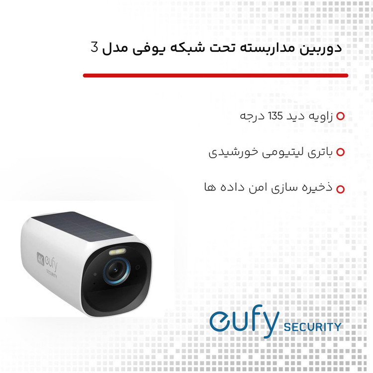 با پنل خورشیدی خود، eufycam 3 برای کار مداوم فقط به دو ساعت نور خورشید نیاز دارد که از عمر باتری دوربین های امنیتی استاندارد پیشی می گیرد.