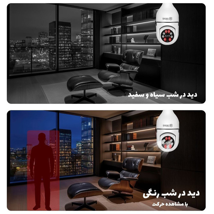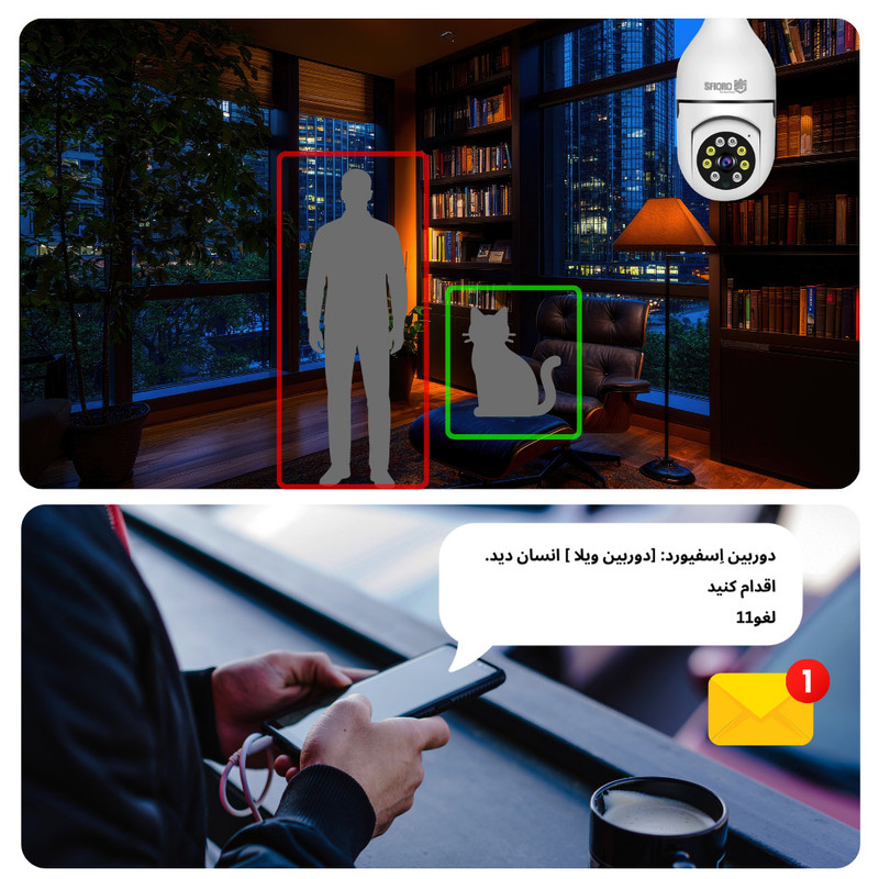دوربین مداربسته اسفیورد مدل Z338 یک سیستم امنیتی کامل و باکیفیت با قیمتی اقتصادی است که به لطف بهرهمندی از جدیدترین تکنولوژیهای نظارت الکترونیک، عملکرد بسیار خوب و قابل قبولی ارائه میدهد. {اپلیکیشن فارسی اختصاصی اسفیورد}، امکان ذخیرهسازی تصاویر بر روی {فضای ابری} (CLOUD)، تکنولوژی {دید در شب رنگی} (استارلایت)، {دزدگیر هوشمند با قابلیت تشخیص حرکات انسان و تفکیک آن از حرکات حیوانات یا اشیا و پخش آژیر و ارسال پیامک (SMS)}، تکنولوژی {دوآل اسکرین} (نمایش دو تصویر همزمان) از مهمترین ویژگیهای این دوربین مداربسته اسفیورد هستند. (قابلیت های ارسال پیامک و فضای ابری این دوربین بر روی گوشیهای اپل پشتیبانی نمیشود.) {نصب سریع و ساده} این دوربین بر روی تنها یک سرپیچ لامپ، از دیگر مزایای آن به شمار میرود. مشابه سایر دوربینهای اسفیورد، این مدل نیز از {سرورهای امن چندلایه انتقال تصویر P2P با مصرف اینترنت نیمبهای داخلی} برای نمایش تصویر دوربین بر روی موبایل استفاده میکند. دوربین Z338 دارای {کیفیت تصویر ۳MPX} است که تصاویر را با کیفیت FULL HD ذخیره میکند. برای راهاندازی این دوربین نیازی به دستگاه ضبط و سیمکشی نیست؛ تنها کافی است نرمافزار مربوطه را روی گوشی موبایل نصب کرده و مطابق دفترچه راهنمای فارسی، دوربین را به مودم اینترنت متصل کنید تا بتوانید صدا و تصویر را بهراحتی روی گوشی موبایل از هر نقطه ایران مشاهده کنید. این دوربین بدون نیاز به اینترنت، صدا و تصویر را بر روی کارت حافظه ذخیره میکند و فقط کافی است یک مموری کارت microSD تا ظرفیت ۱۲۸ گیگابایت تهیه کنید. بازپخش تصاویر ضبطشده از طریق نرمافزار موبایل انجام میشود و میتوان بهراحتی از آنها خروجی گرفت. این دوربین برای نصب در فضاهای داخلی ساختمان مناسب است و امکان {اشتراکگذاری تصاویر زنده روی موبایل تا ۱۰ نفر} را فراهم میکند.