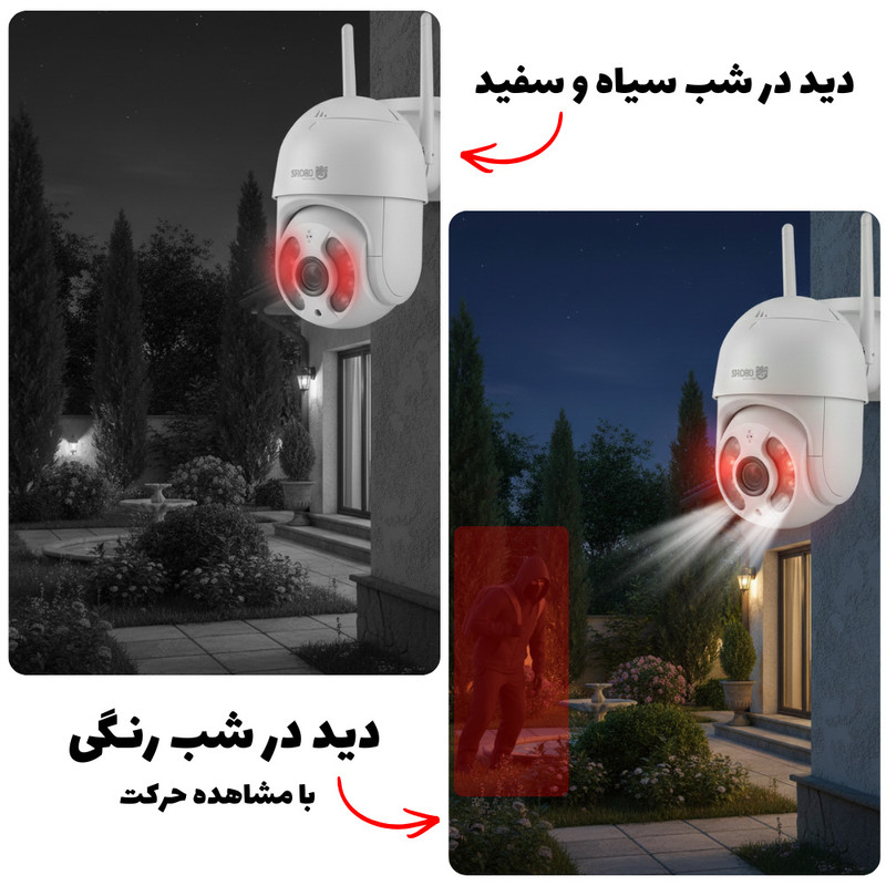 دوربین مداربسته سیمکارتی اسفیورد مدل Z319 با بهرمندی از هوش مصنوعی و با {قابلیت چرخش}، {کیفیت تصویرFull-HD} و {دید درشب رنگی}، {دزدگیر با قابلیت تشخیص انسان و تفکیک آن از حرکات اشیا و حیوانات و ارسال SMS}، ضبط صدا و تصویر بر روی کارت حافظه و {فضای ابری}، یک راه حل جامع برای نیازهای امنیتی شما بدون نیاز به مودم جداگانه است. کافیست یک سیمکارت معمولی روی ماژول مودم همراه دوربین قرار دهید. از ویژگی های برجسته این دوربین این است که با اپلیکیشن و دفترچه راهنما و ویدیوهای آموزشی اسفیورد، میتوانید در کمتر از ۱۰ دقیقه دوربین را بدون نیاز به متخصص نصب کنید (نصب سریع و آسان). این دوربین اسفیورد با سنسور تصویر 3MPX و تکنولوژی دید در شب رنگی، تصاویری شگفتانگیز را در روز و شب ارائه میدهد تا هیچ جزییاتی را از دست ندهید. ۳۳۵درجه چرخش افقی و ۹۰درجه عمودی میتواند شما را از نصب چند دوربین مداربسته بینیاز کند. این قابلیت با هوش مصنوعی می تواند دوربین را به یک نگهبان تبدیل کند تا کوچک ترین تحرکات را در محیط تشخیص دهد و سوژه را دنبال کند. (تشخیص حرکت و تعقیب سوژه) طراحی متفاوت و مقاوم این دوربین، آن را به گزینهای مناسب برای نصب در محیطهای بیرونی مانند باغ، ویلا یا خارج ساختمان تبدیل کرده است. این دوربین در برابر باران و آفتاب مقاوم است و شما میتوانید بدون نگرانی از آن استفاده کنید. دوربین هوشمند اسفیورد دارای میکروفن و بلندگوی داخلی است که به شما این امکان را میدهد تا با عزیزان خود در محل کار یا خانه صحبت کنید. این ویژگی به شما کمک میکند تا ارتباط موثری با کارمندان یا اعضای خانواده خود برقرار کنید. این دوربین قابلیت نصب کارت حافظه تا 128GB را دارد و همچنین میتوانید از اشتراک حافظه ابری اسفیورد استفاده کنید. فضای ابری به شما اجازه میدهد تا تصاویر خود را بر روی سرور ذخیره کنید و در هر زمان به آنها دسترسی داشته باشید. سیستم دزدگیر هوشمند دوربین اسفیورد با قابلیت زمانبندی اتوماتیک و ارسال پیامک و پخش آژیر در صورت شناسایی حرکت یا انسان، شما را در جریان قرار میدهد. (قابلیت های ارسال پیامک و فضای ابری این دوربین بر روی گوشی های اپل پشتیبانی نمی شود و فقط بر روی گوشی های اندرویدی قابل استفاده است.)