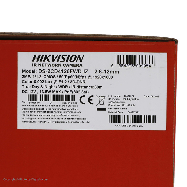 دوربین 2 مگاپیکسلی هایک ویژن مدلDS-2CD4126FWD-IZ یک دوربین دام و از دسته دوربین های تحت شبکه با بدنه فلزی است. تصاویر ارائه شده توسط این دوربین 2 مگاپیکسلی دارای کیفیت بسیار خوبی هستند. میزان حساسیت نوری در این دوربین مداربسته برابر با 0/005 لوکس و با مادون قرمز 0 لوکس است.