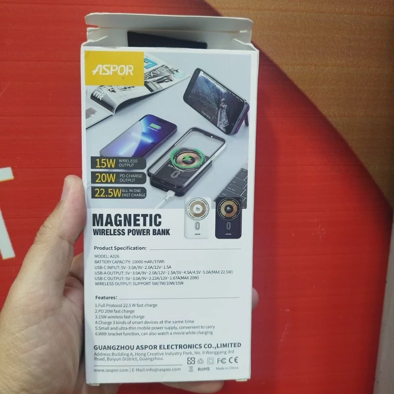پاوربانک 10 هزار وایرلس شارژ اصلی آسپور ASPOR مدل A326 فست