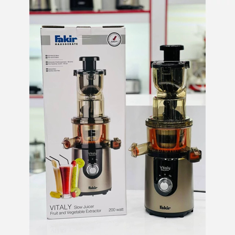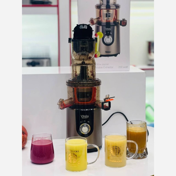 عصاره گیری برند فکر مدل ویتالی سیستم آبمیوه گیری آهسته دور در دقیقه فیلتر استیل دهنه بزرگ بازه توان دستگاه وات