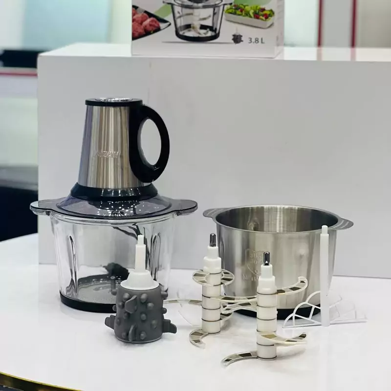 دارای دو کاسه شیشه ای و استیل ۳.۸ لیتر