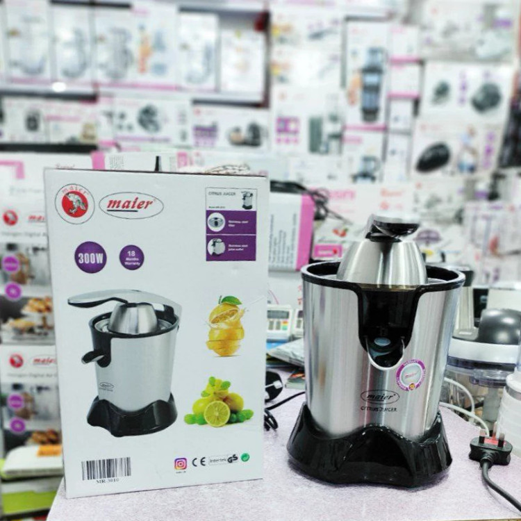 اب پرتقال گیری ماییر مدل MR-3010 بدنه استیل ضد زنگ دستگیره الومنیومی دایکاست برای کار کرد اسان سبد فیلتر استیل ضد زنگ