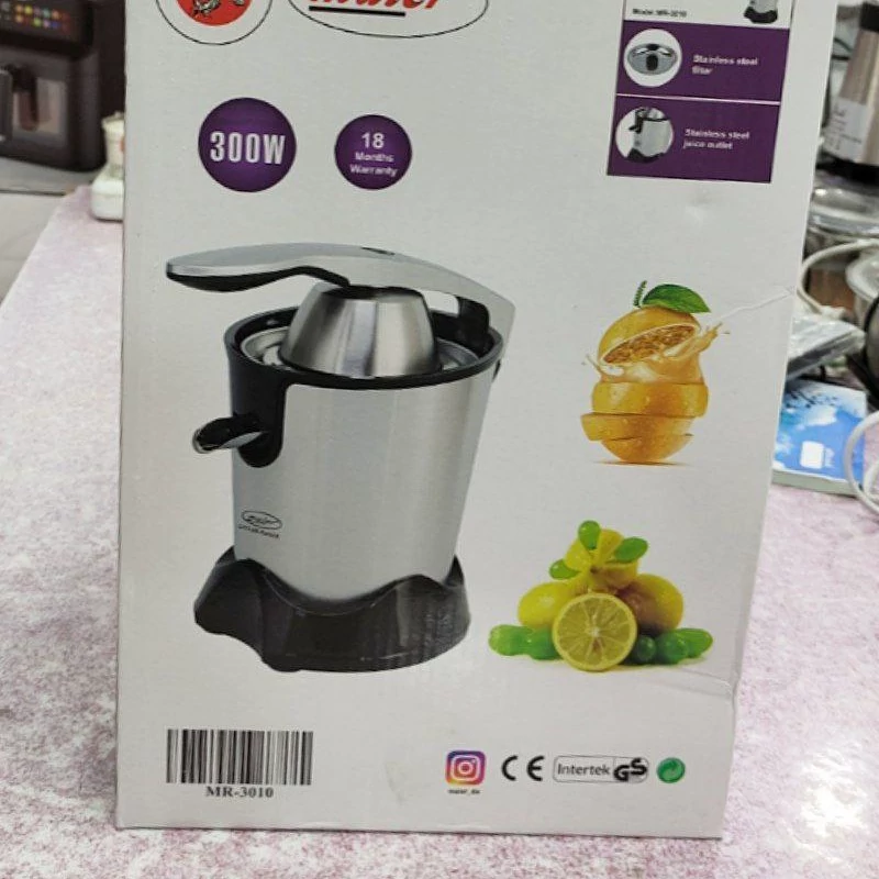اب پرتقال گیری ماییر مدل MR-3010 بدنه استیل ضد زنگ دستگیره الومنیومی دایکاست برای کار کرد اسان سبد فیلتر استیل ضد زنگ