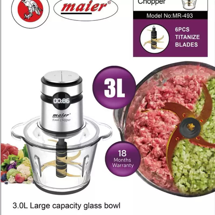 خردکن 3 لیتر دیجیتال پارچ شیشه ای جدید تمام حرفه ای مایر مدل 493 دارای تیغ تیتانیوم و قدرت موتور 600 وات فول کوپر تعداد
