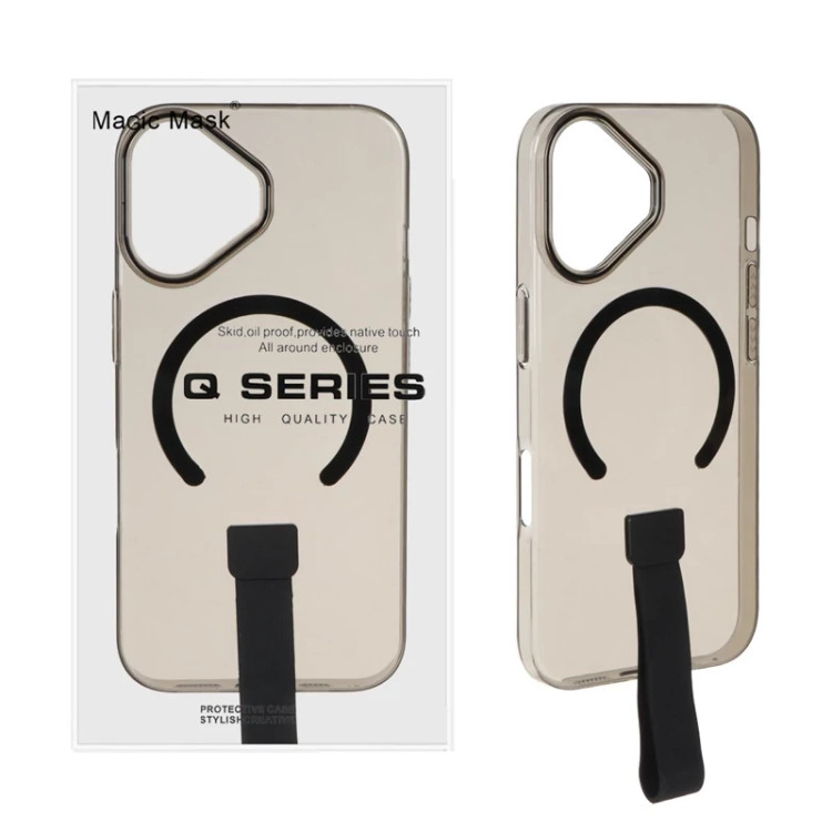 قاب اوجینال Q Series شفاف فینگربند سیلیکونی Magsafe مدل Apple iPhone 16 - مشکی (پک دار)